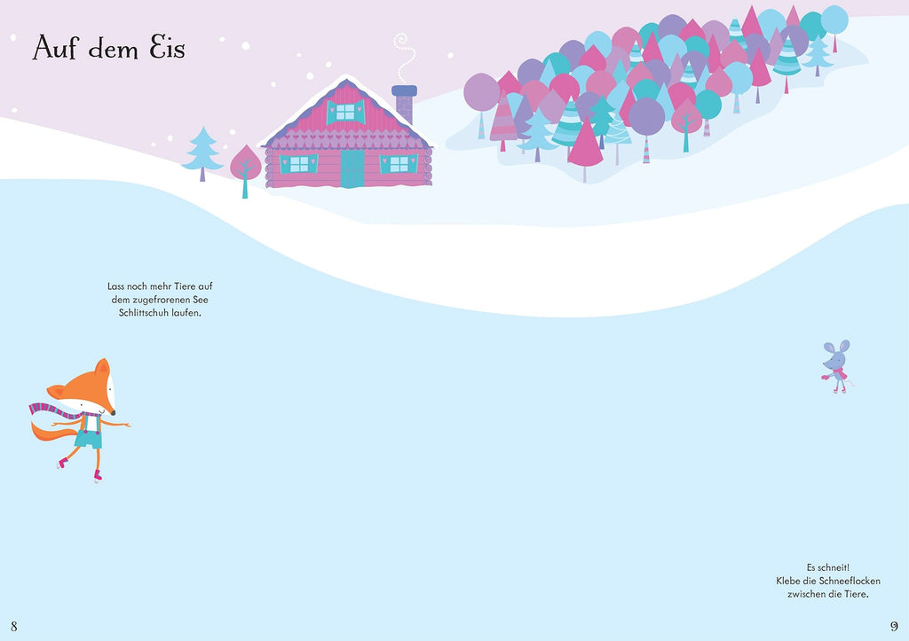 Dekoriere den Weihnachtsbaum, sause auf Skiern den Hügel hinab oder spiele mit den Tieren im Schnee. Schmücke mit über 340 wiederablösbaren Stickern die vielen winterlichen Szenen aus.