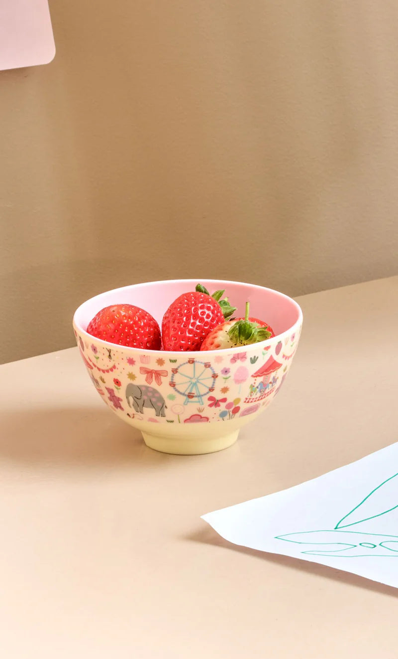Diese kleine Schüssel ist aus Melamin, einem Material das sowohl praktisch als auch langlebig ist. Rice stellt sicher, dass ihr Melamin von hoher Qualität, wiederverwendbar und frei von Bisphenol A und Phthalaten ist.