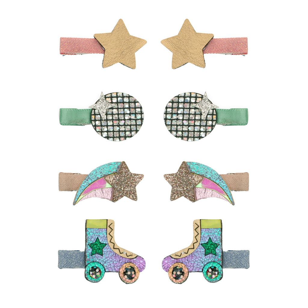 Sterne aus einer Mischung aus Glitzer- und Metallic-Stoffen mit bunten Lamettafäden