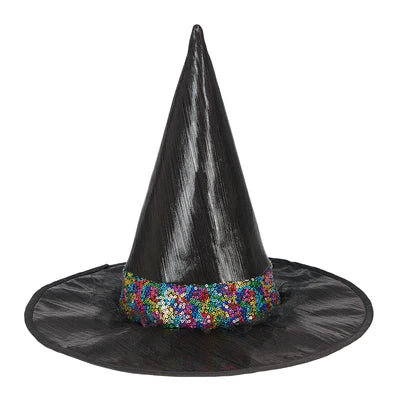 Dieser kleine Hexenhut Agatha besteht aus 100 % Polyester, ist 46 cm breit und lässt sich durch ein kleines Klettband an der Innenseite in der Größe anpassen (4–10 Jahre).