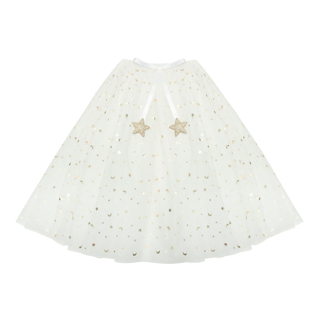 Mehrere Lagen wunderschöner weißer Tüll, verziert mit metallisch goldenen Monden und Sternen.