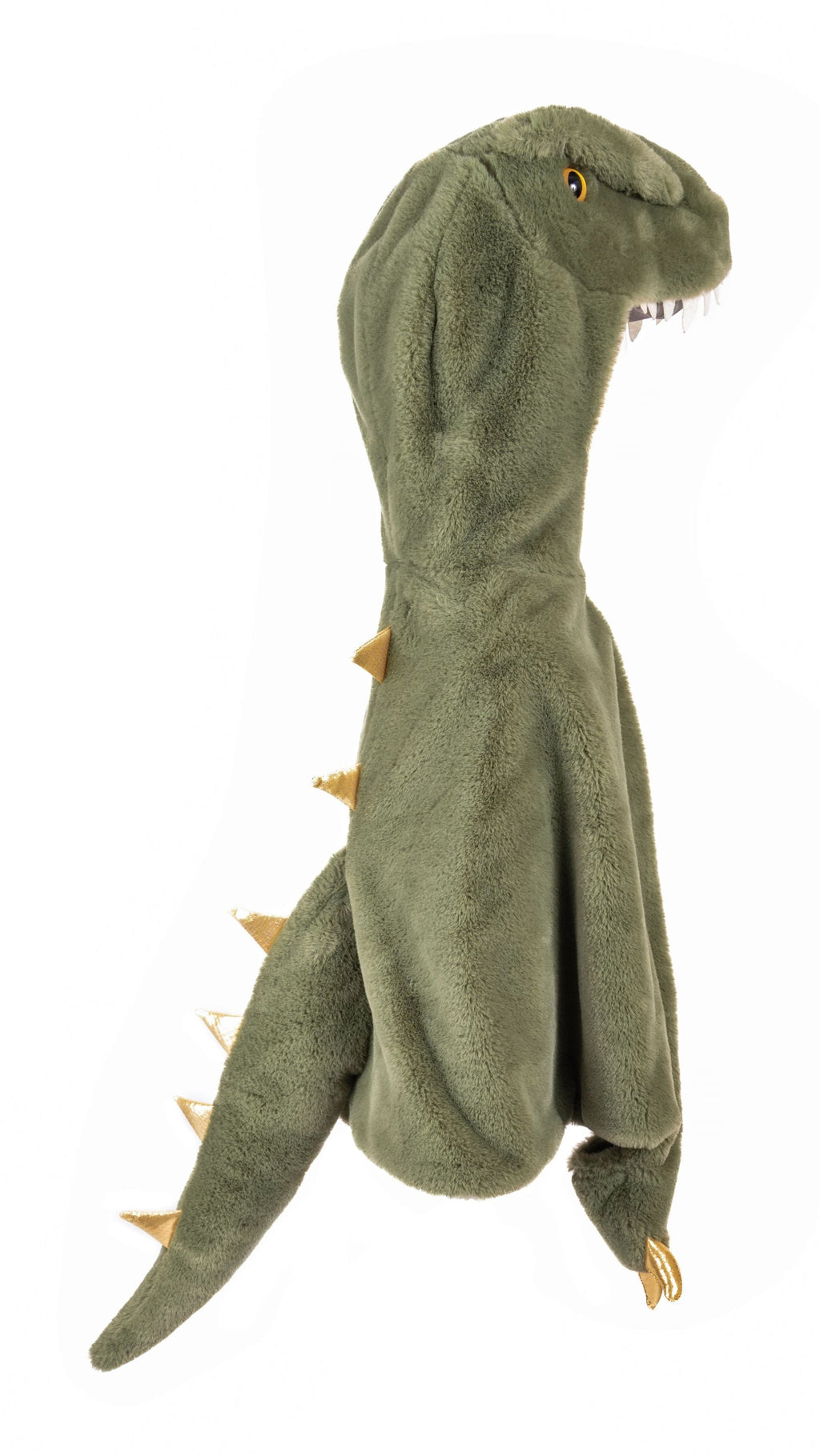 Das Cape eignet sich perfekt zum Kuscheln und Herumtollen und verfügt über einen Klettverschluss am Hals für einfaches Anziehen sowie Taschen als „Dino-Pfoten“, die kleine Hände warm halten, während sie spielen, brüllen und ihr Jurassic-Königreich regieren.