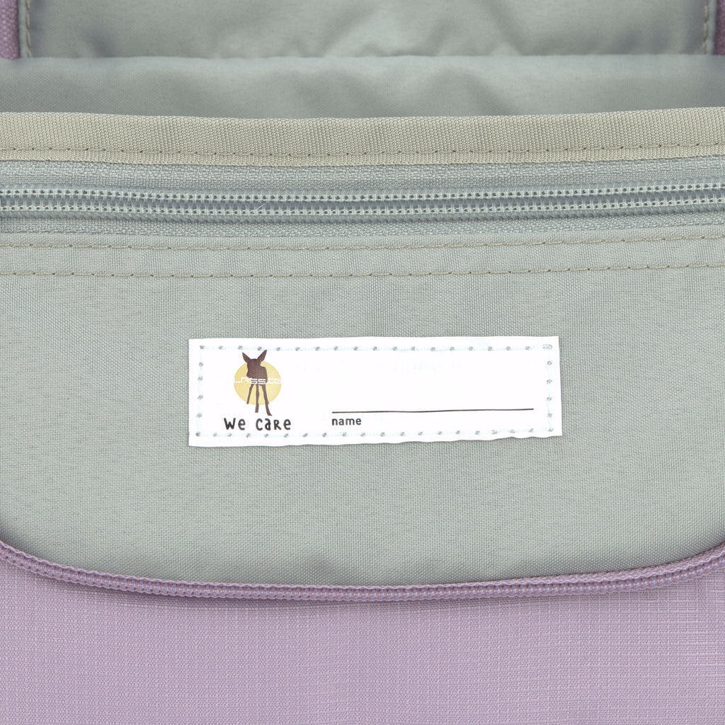- Namensschild auf der Innenseite des Kulturbeutels