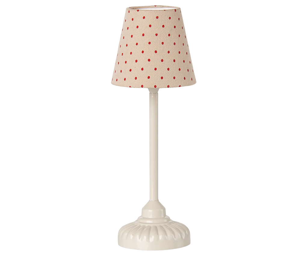 Die schöne Maileg Vintage Stehleuchte ist ein Must-Have. Die Lampe erhellt den Raum mit einem sanften Ton. Das Produkt wird ohne Batterie geliefert. Du musst eine Knopfzellenbatterie (CR2032) hinzufügen.