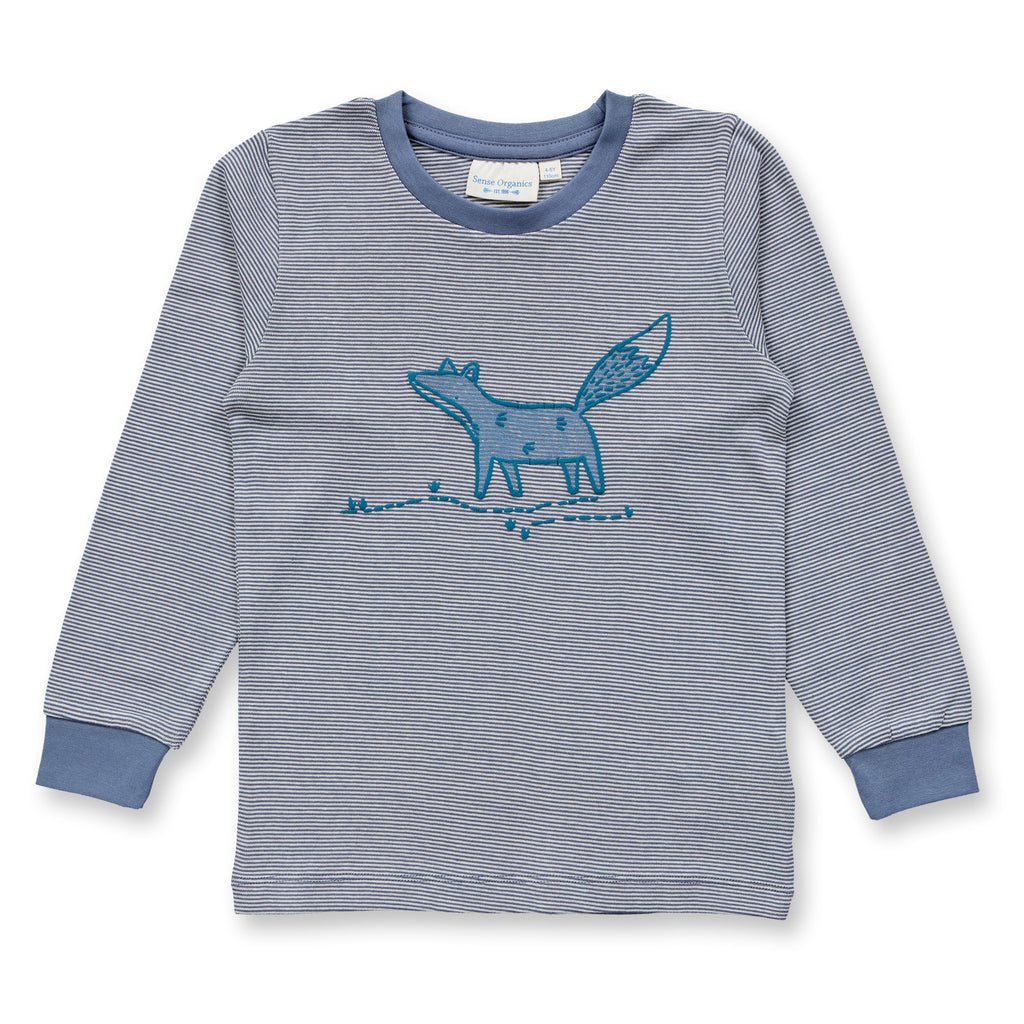 Sense Organics Schlafanzug Long John Blau-Grau Streifen Fuchs