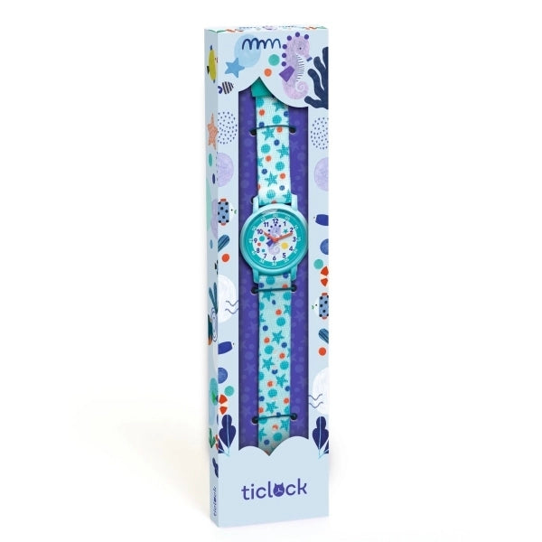 Elegante Quarzuhr mit schönem Ozeanmotiv zum Uhr-Lesen-Lernen.
