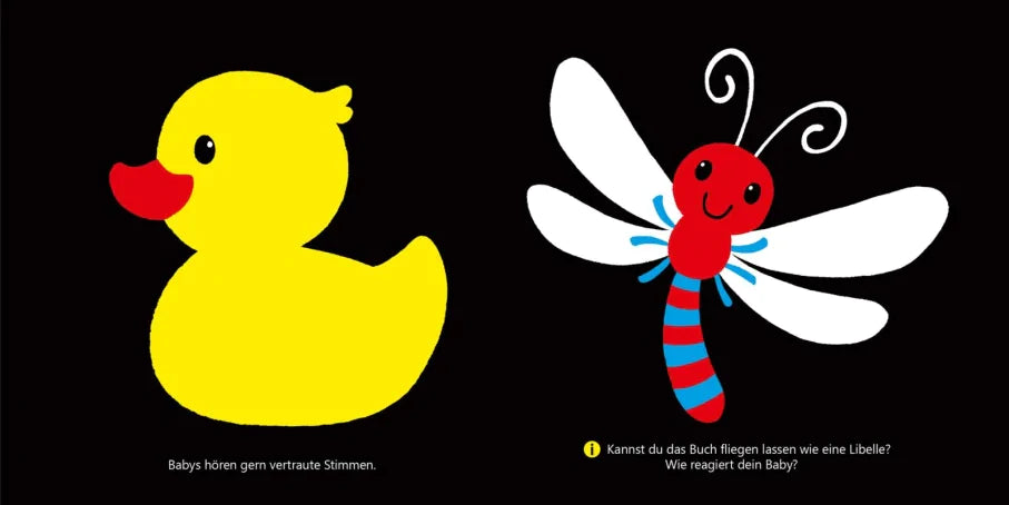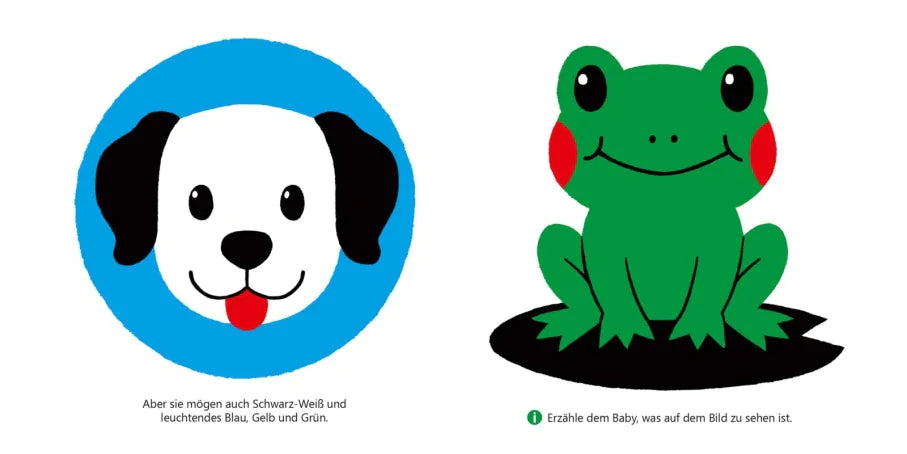 Babyaugen sehen anders: In den ersten Lebensmonaten nehmen Babys Schwarz-Weiß-Kontraste und leuchtende Farben besonders gut wahr. Diese spannenden Motive wecken ihr Interesse und können schon die Allerkleinsten beruhigen und beschäftigen.