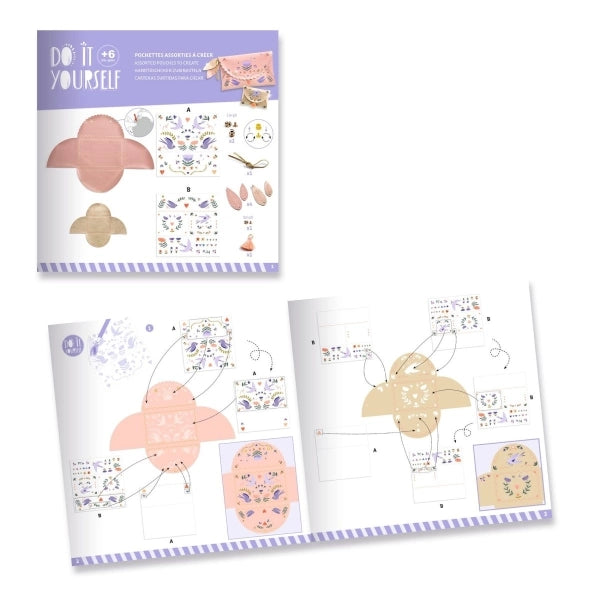 Ein Kreativset, mit dem man ein Set aus einer passenden Tasche und einer Geldbörse aus Kunstleder herstellen kann. Mithilfe eines Bleistifts reibt das Kind die Abziehbilder ab, um sie nach den vorgeschlagenen Mustern oder nach seinen Wünschen auf die Taschen zu übertragen. Dann fügt es jede Tasche mithilfe der Schraubverschlüsse zusammen und fügt die Quaste, die Handschlaufe und die hübschen Verzierungen aus Kunstleder hinzu. Welch ein Stolz, beim Benutzen des neuen Fashion-Accessoires!