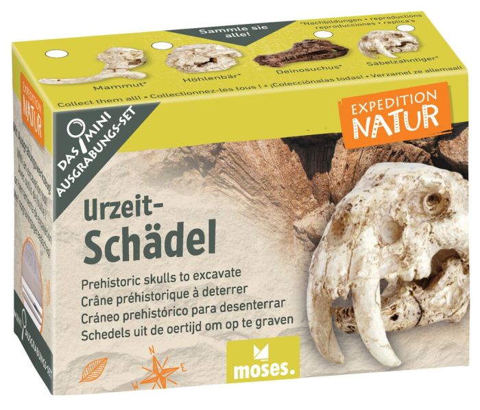 Faszinierende Ausgrabungsstücke zum Sammeln und Staunen: Die Expedition Natur Mini-Ausgrabungssets lassen kleine Forscher*innen eins von sechs verschiedenen Themen entdecken. In jedem Set ist eins von vier möglichen Ausgrabungsstücken mit passender Sammelkarte enthalten. Erst beim Ausgraben mit dem beigelegten Holzwerkzeug finden kleine Paläontolog*innen, Mineralog*innen und Wissenschaftler*innen heraus, was sie gerade freilegen. Auf der passenden Karte mit zahlreichen spannenden Infos können Kinder anschließend jede Menge über das Ausgrabungsobjekt nachlesen und so viele spannende Fakten über Fossilien, Mineralien, Münzen, Zähne und Schädel lernen. Los geht die Sammeljagd!