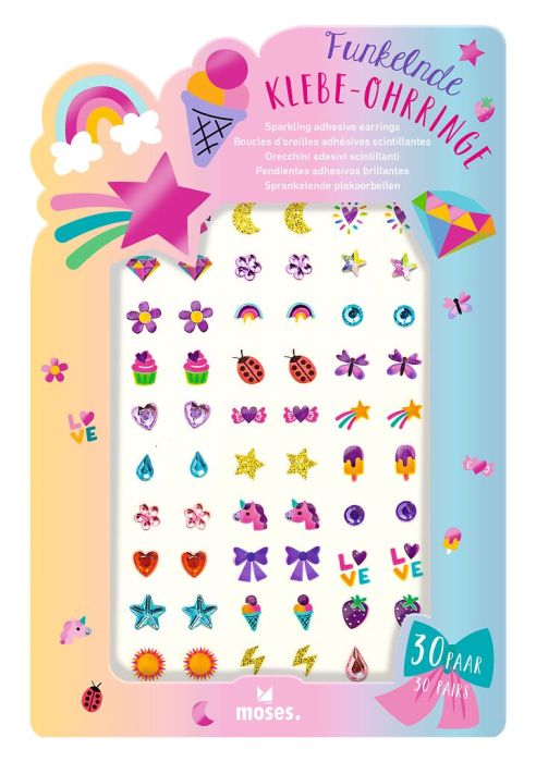 Diese funkelnden Klebe-Ohrringe sorgen für strahlende Augen bei kleinen Schmuckfans. Die 30 Paar Sticker lassen sich kinderleicht aufbringen und mehrfach verwenden – ganz ohne Pieksen.