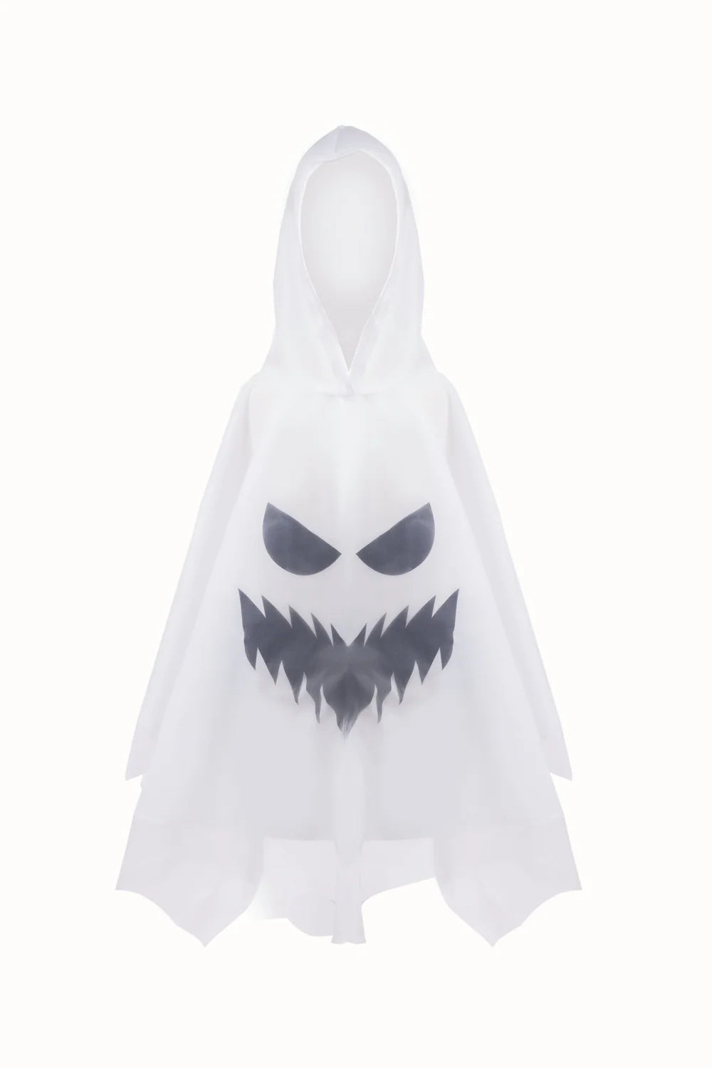 Unser NEUER Spooky Ghost Poncho ist wunderbar schlicht und unheimlich lustig und das perfekte Kostüm für kleine Geister, die es gerne bequem und gruselig haben! Dieser Poncho aus weichem weißem Stoff hat ein klassisches Geistergesicht mit auffälligen schwarzen Augen und einem Mund sowie eine geräumige Kapuze für einen besonders unheimlichen Effekt. Der Stoff fließt und fällt wie bei einem echten Geist und schafft eine verspielte, schwebende Silhouette, die sich perfekt für „Süßes oder Saures“, Halloween-Partys oder gruseligen Verkleidungsspaß zu jeder Zeit eignet.