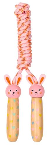 Dieses liebevoll gestaltete Springseil sorgt für Bewegung und Spielspaß in einem. Die robusten Holzgriffe sind mit niedlichen Filzöhrchen verziert und bieten einen sicheren Halt. Das Baumwollseil kann dank der praktischen Löcher in den Griffen individuell in der Länge angepasst werden.