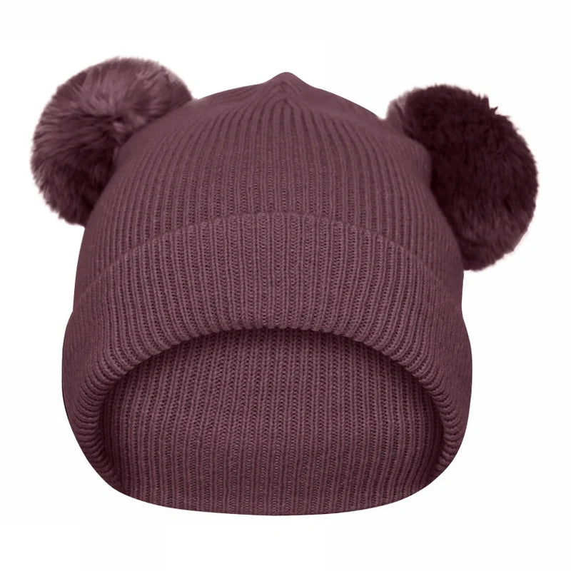 Die Beanie verfügt über einen umgeschlagenen Rippenrand um den Kopf für eine optimale Passform. Zusätzlich hat sie oben zwei Kunstfell-Pompons.