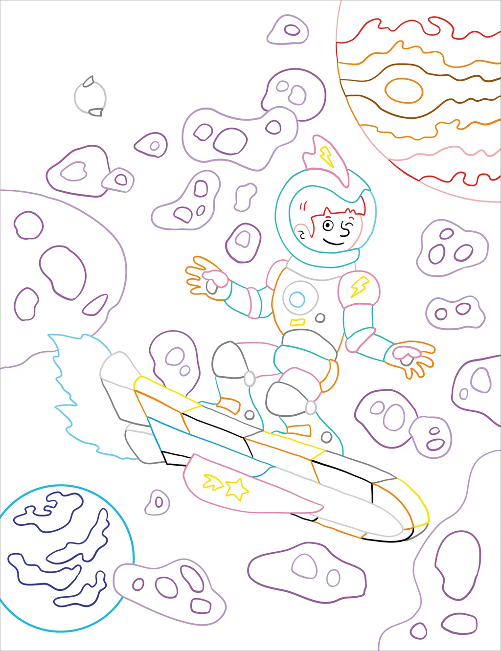 Dieser Malblock ist weltraumtastisch! Während des Malens werden auf dem Spezialpapier verborgene Muster und versteckte Motive wie durch Zauberei sichtbar. Ob fremde Galaxien, fremdartige Weltraumwesen oder Planeten – 24 galaktische Motive warten darauf, ausgemalt und entdeckt zu werden!